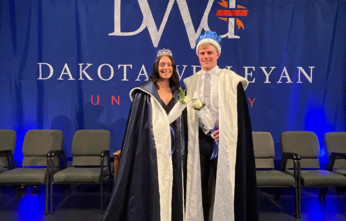MITCHELL, S.D. — Dakota Wesleyan University crowned its homecoming royalty Monday night during Coronation. Darby Deffenbaugh, of Kimball, and Adam DeJong of Watertown, were named the DWU Homecoming Royalty for 2022.