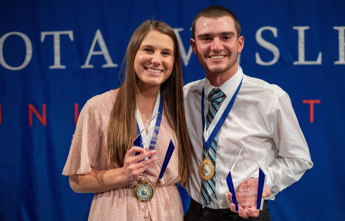 MITCHELL — Kindra Clark and Wyatt Voelker, seniors at Dakota Wesleyan University, were named the 2021 Ms. Wesleyan and Scotchman, the university’s highest honors, during the Honors Convocation Friday night.