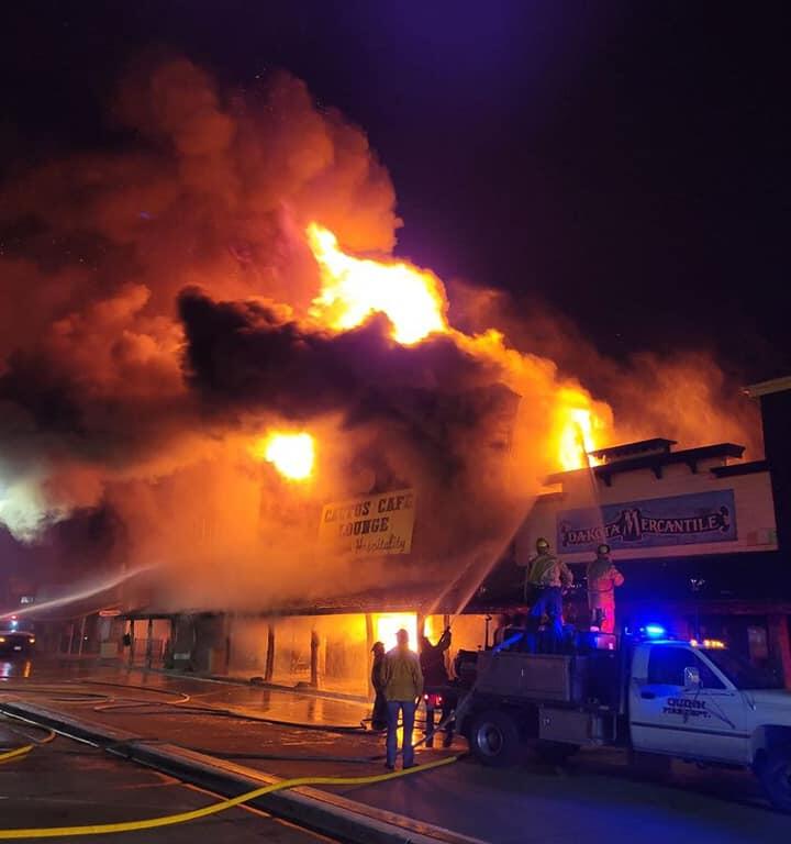 Wall volunteer firefighters responded to a reported structure fire in the 500 block of Main Street in Wall just before 9 PM on Monday, where the Cactus Cafe Lounge is located. Arriving volunteer firefighters found a free-burning fire with heavy smoke and fire extending into the roof assembly of the structure, which also contained residential occupancy. The fire eventually went to multiple alarms.