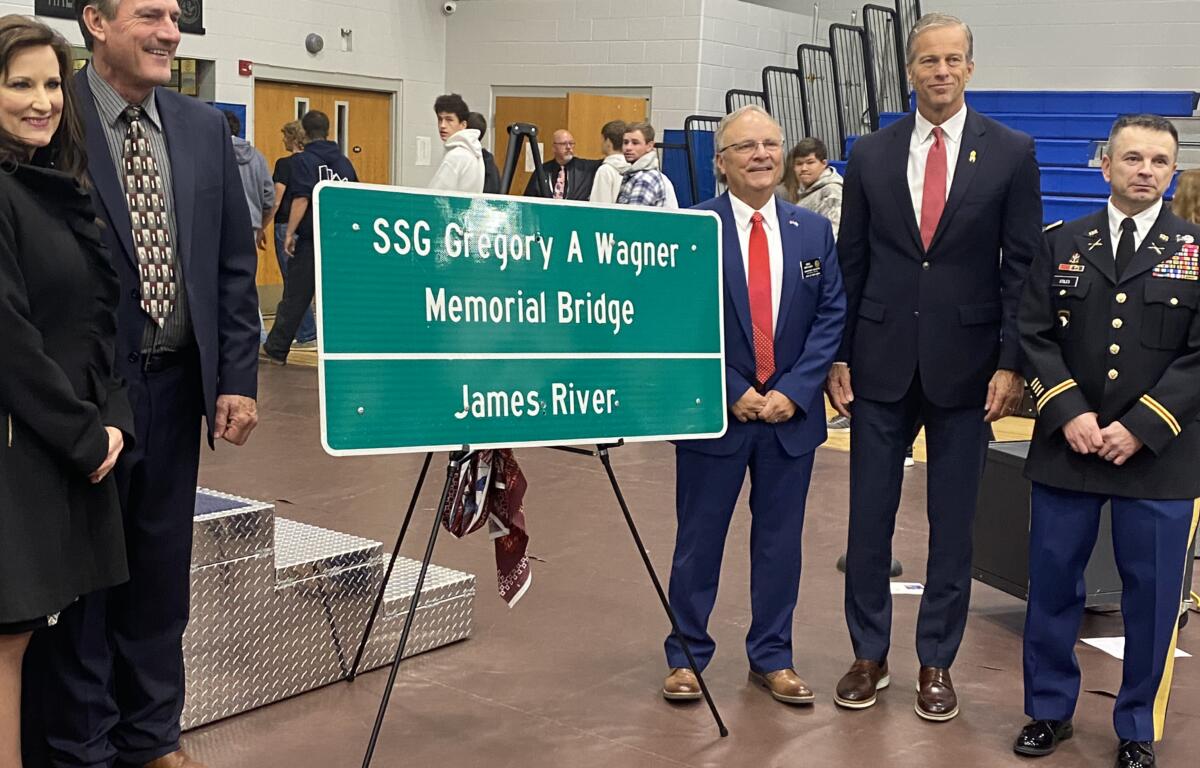 ALEXANDRIA — A bridge dedication ceremony for Gregory Wagner was held on Thursday morning at the Hanson High School gym. The Highway 38 bridge east of Mitchell will now be knows as the SSGT Gregory Wagner Memorial Bridge after the fallen soldier, who was killed in active service in 2006.