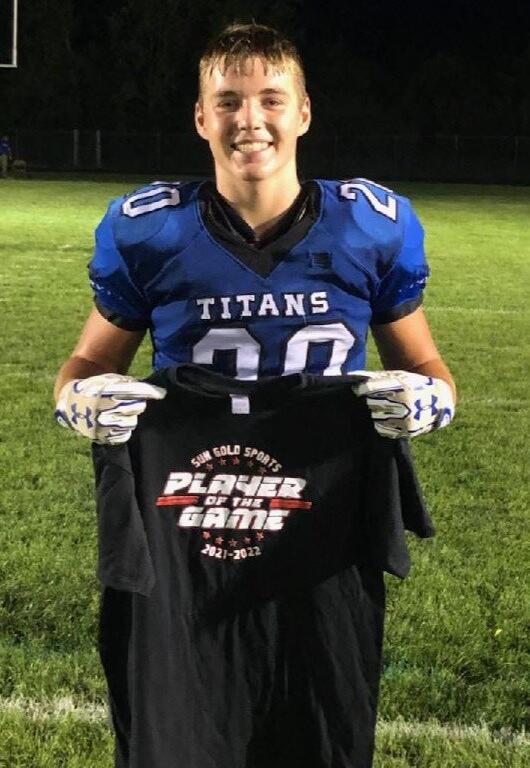 Chris Mayer of Mt. Vernon/Plankinton was the Sun Gold Sports Player of the Week for Friday’s 50-0 win over Tripp-Delmont/Armour/Andes Central/Dakota Christian. Congratulations, Chris!