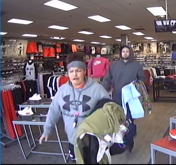On 1-11-23 at approximately 2:09 PM, an unknown male and female entered a business located in the 2200 block of South Mentzer in Mitchell and picked out numerous pieces of clothing and a backpack. The individuals ran out of the store without paying for the merchandise valued at approximately $500. The individuals fled in a 2008 White Chevy Malibu. See attached photographs of the suspect.