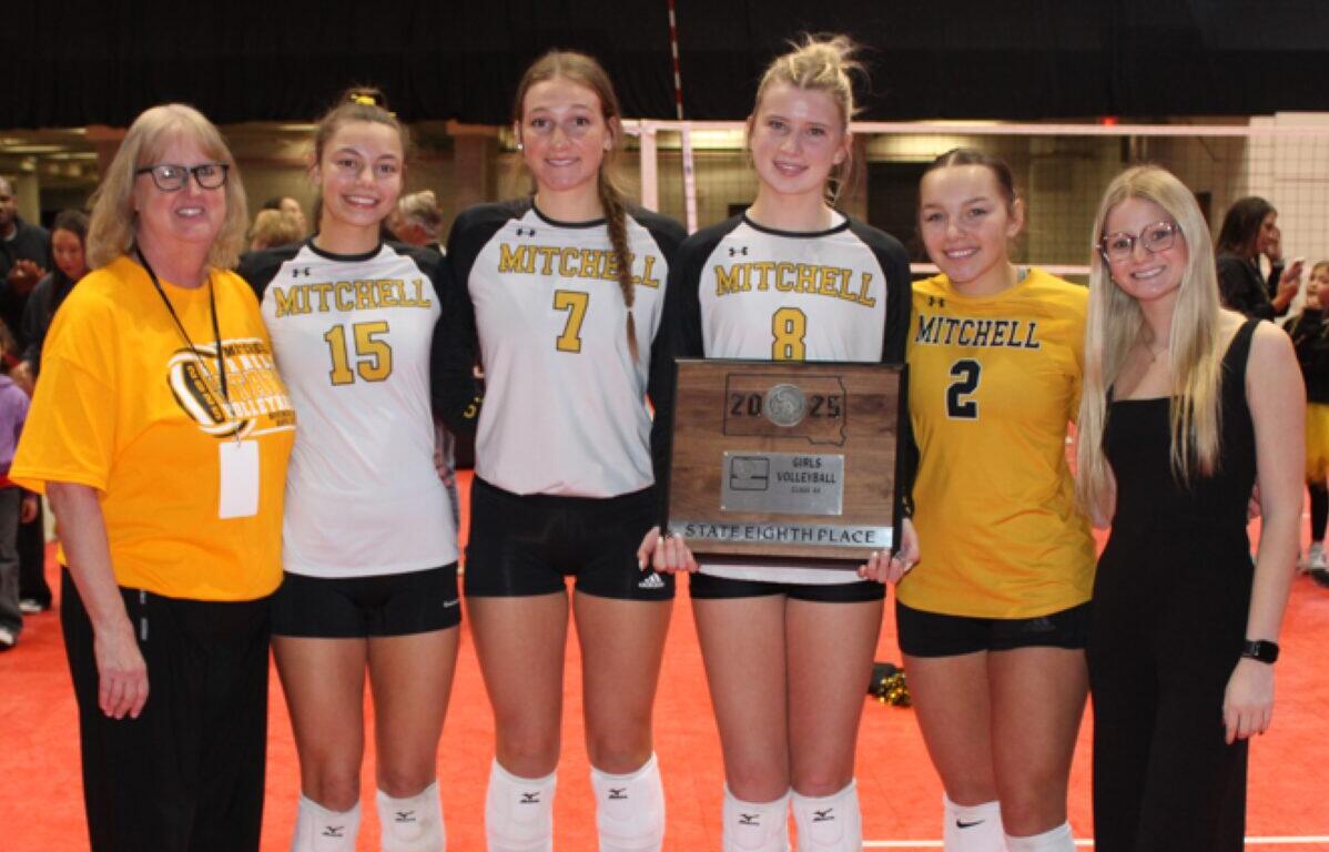 MITCHELL, SD (Mitchell Now) — Deb Thill led the Mitchell Kernels Volleyball team back onto the floor at the State Tournament for the first time since 2018 this last weekend. The Kernels punched their ticket in front of a packed crowd at Mitchell’s new high school gym, defeating Spearfish in the SoDak 16 and capping off a season Thill describes as “a dream.” Now in her 35th year at the helm, Thill said this turnaround wasn’t accidental. After finishing ninth in the ESD last year, Mitchell jumped to third, hosted a SoDak 16 match, and ultimately secured a long-awaited place at State sweeping Spearfish 3 sets to 0. Coach Thill is assisted by coaches: Christina Siemsen, Katrina Talley, Amy Uher, and Cait Way.