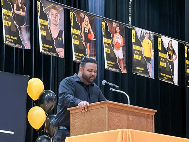 This award in previous years was given to just one male or female athlete, but it was decided this year to award both a male and female. It is an annual award half based on athletic accomplishments and the other half on leadership and participation in other school and community activities. We also transitioned to a physical award instead of engraved watches, which were given in the past. This year’s award was presented by the “Voice of the Kernels” and On-Air Personality at KMIT, Drew Ivery.