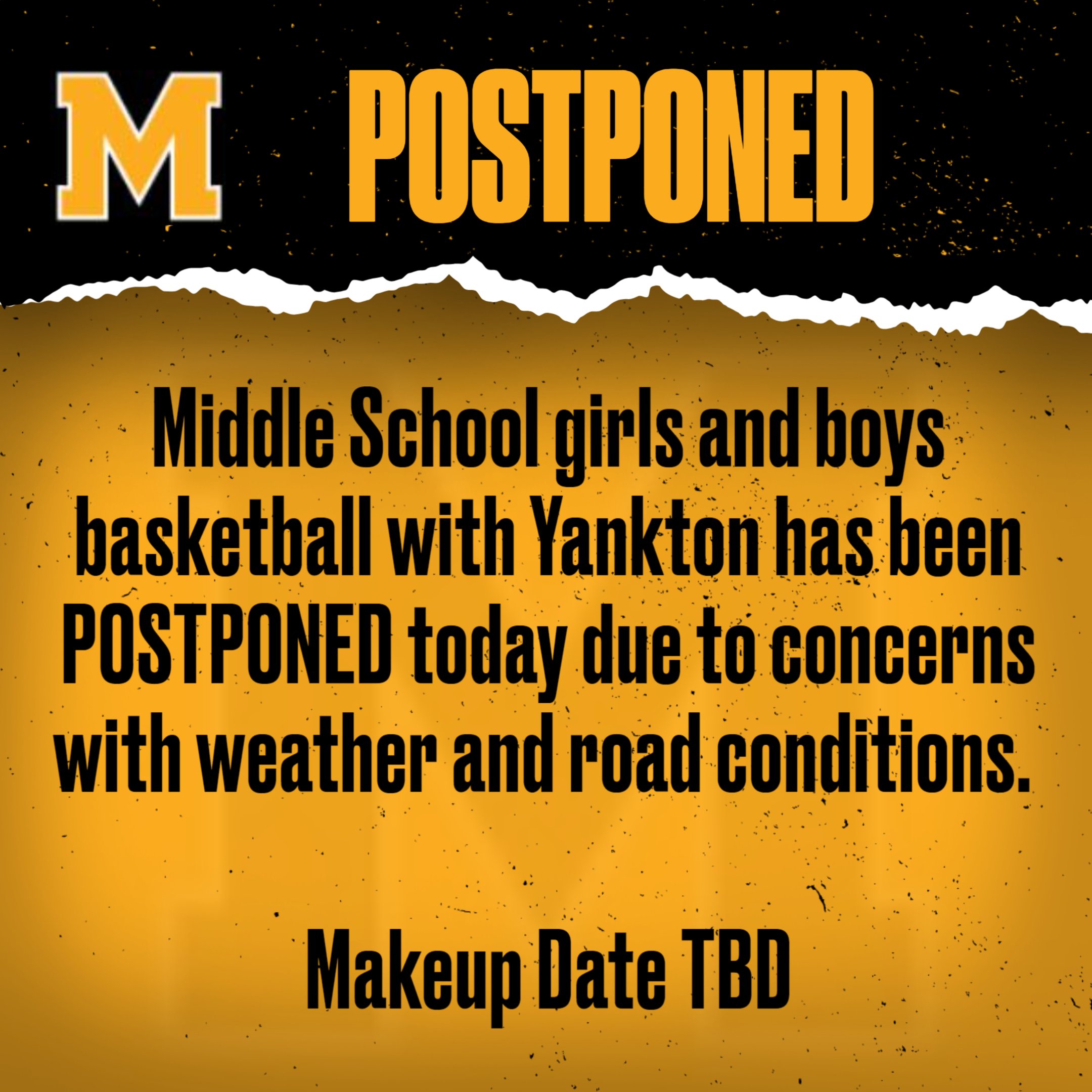 Mitchell vs Yankton middle school basketball postponed for Monday, Jan. 16