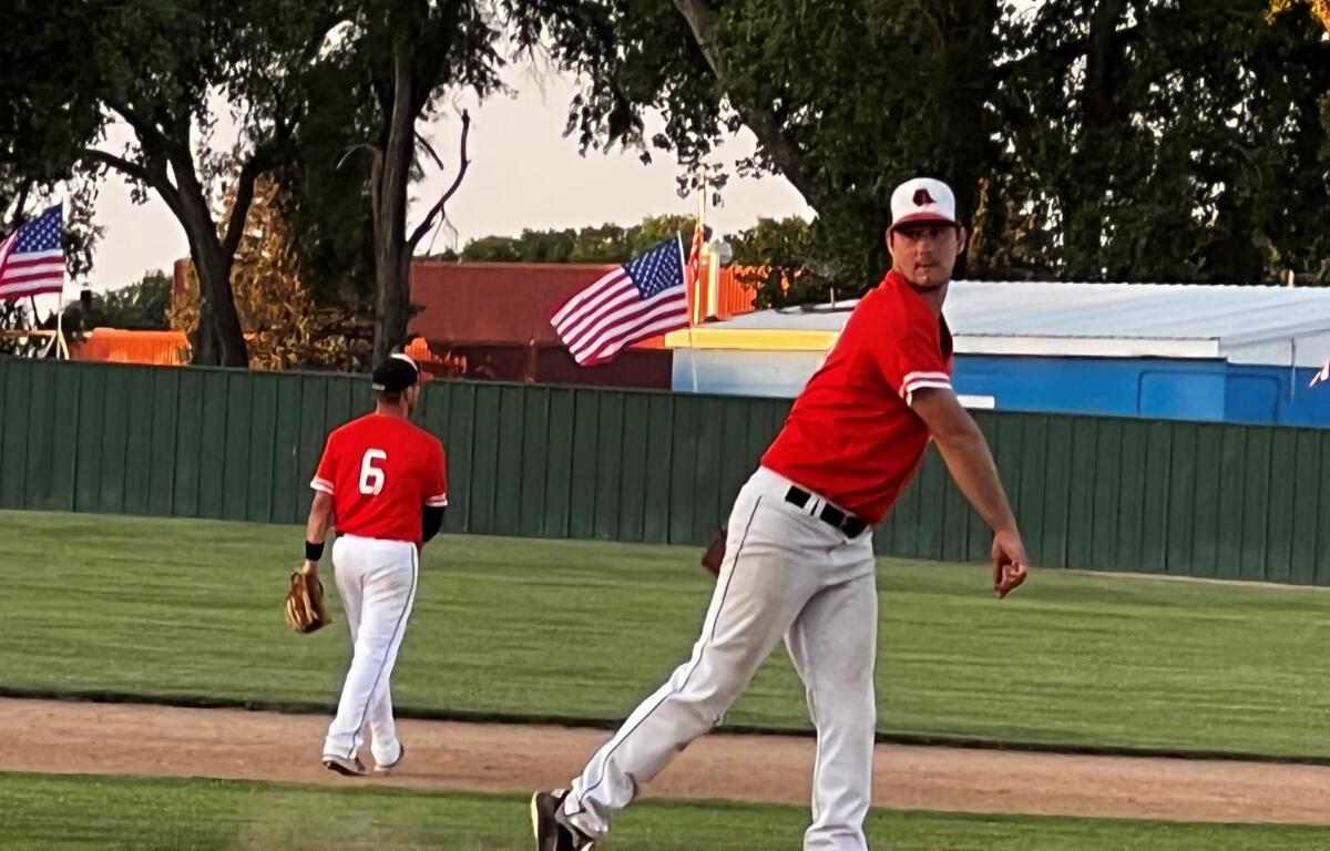MITCHELL — Luke Tiesler tossed a complete game in 141 pitches as the Mount Vernon Mustangs eliminated the Milbank Firechiefs 3-2 on Sunday night in the second round of the South Dakota Amateur Baseball Class B Tournament.