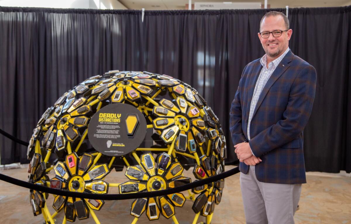 A sculpture, commissioned by the DPS Office of Highway Safety, features 250 recycled cell phones located in 250 small coffins. The artwork represents the 250 drivers killed or injured in distracted driving related crashes in South Dakota during 2021. The sculpture was unveiled Thursday at the Sioux Empire Mall in Sioux Falls.
