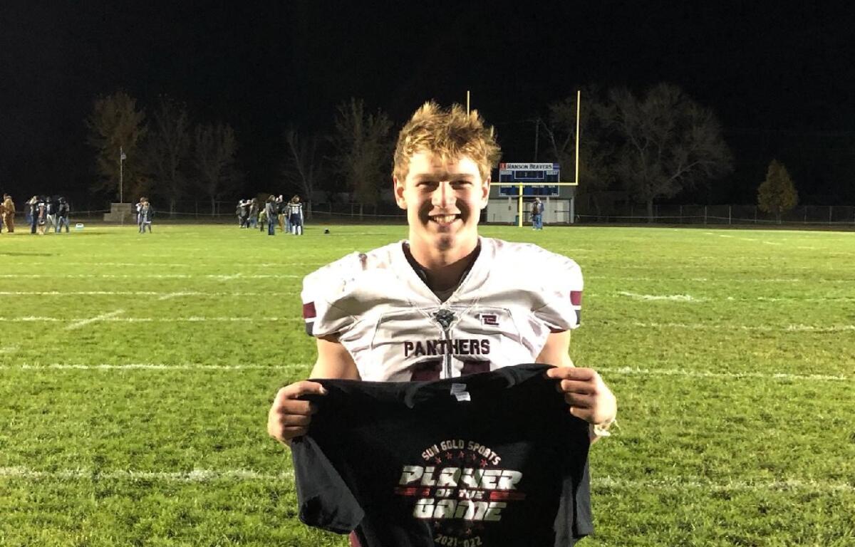In overtime, the Sun Gold Sports Player of the Game Grayson Hanson scored from four yards out and also punched it in for the two-point conversion. Hanson scored on their possession but came up a yard short on the two-point conversion to see their season end at 8-2 overall. Platte-Geddes improved to 8-2 and will advance to the Class 9AA Semifinals next Friday and travel to Timber Lake.