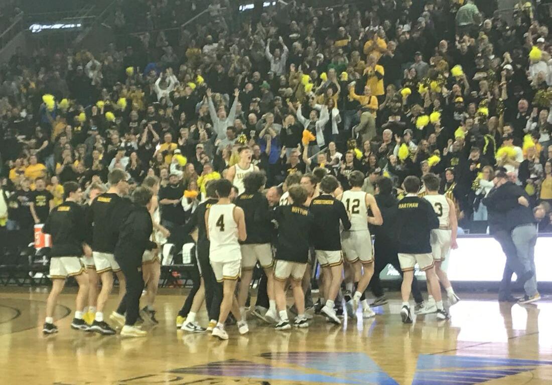 SIOUX FALLS, SD (MITCHELLNOW)  The Mitchell Kernels boys’ basketball team is once again standing alone at the top as Class AA champions. With the game on the line and on the second to last play of the game, big play Marcus Talley did what he does best: attack the lane, draw the defense in, and the hand off the ball to the open player, and Gavin Hinker did the rest and scored what ended up being the game winning layup. The Brandon Valley Lynx had one last chance to win the game with 1.2 seconds left, but Josh Olthoff’s fall away three-pointer would come up short and the Mitchell Kernels won the game 46-45.